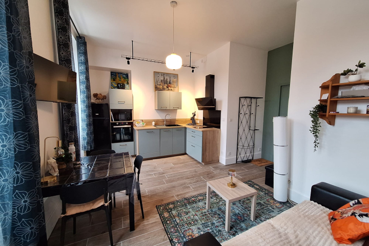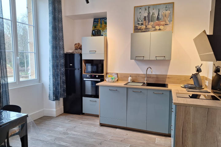 Nestled on the first floor of an old bourgeois house, once an emblematic hotel-restaurant of Bourbon-l'Archambault, Les Glycines is a charming apartment that combines the history of the place with a resolutely contemporary comfort.